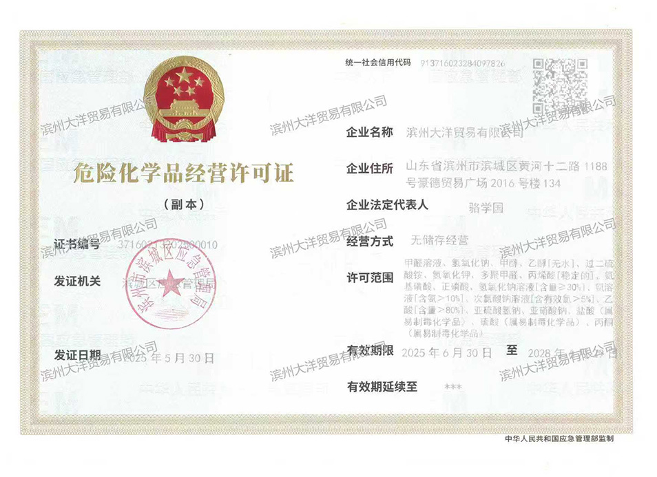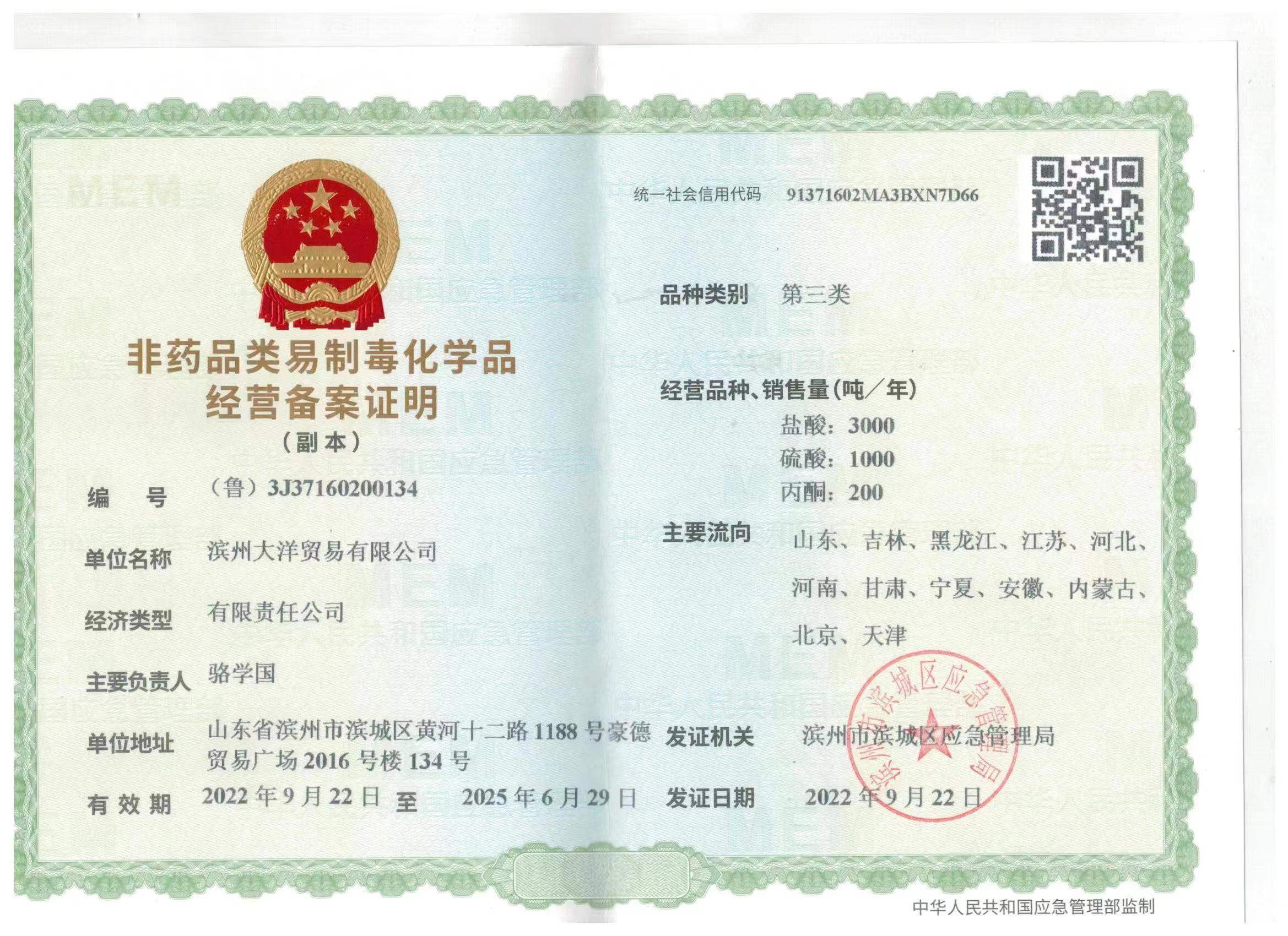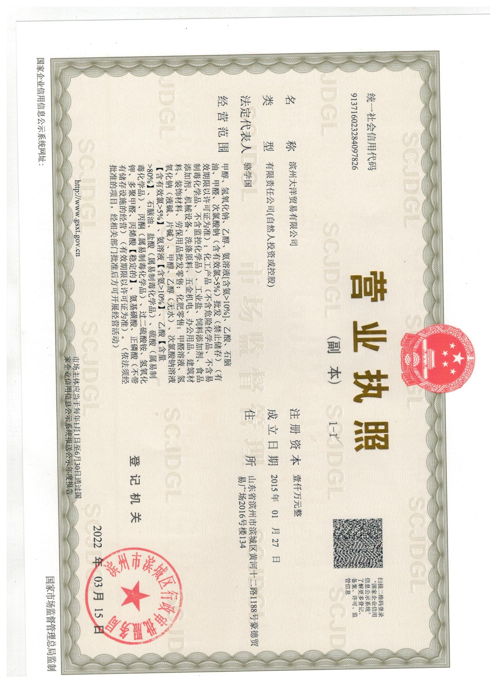 滨州大洋贸易有限公司位于纺织之都滨州市,是一家专业经营各种化工原料的专业公司,与全国各大化工厂均有良好的合作关系,货源稳定、价格低廉。公司依傍国道220,距滨大高速3公里,距离滨州火车站4公里。在滨州、济南均有仓储中心。地理位置、交通条件等为客户的采购创造了优良的条件。